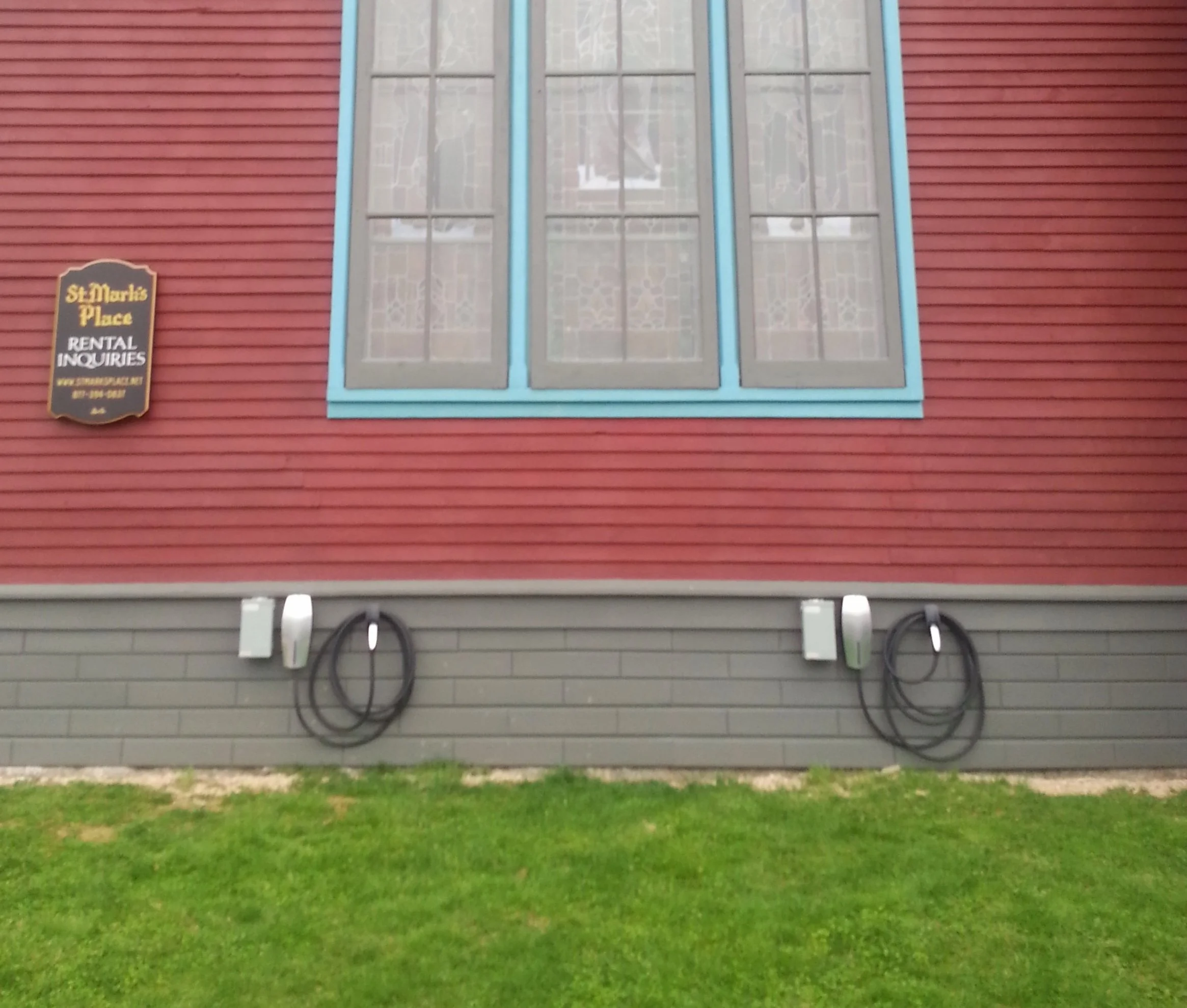 To further make St. Mark's Place relevant to the needs of our modern world, we have three electric car chargets installed Available now are a 40amp EV charging station and two Tesla charging stations 40 amp and 80 amp. All three are available for public use. For FREE. You can find us on www.plugshare.com and www.teslamotors.com